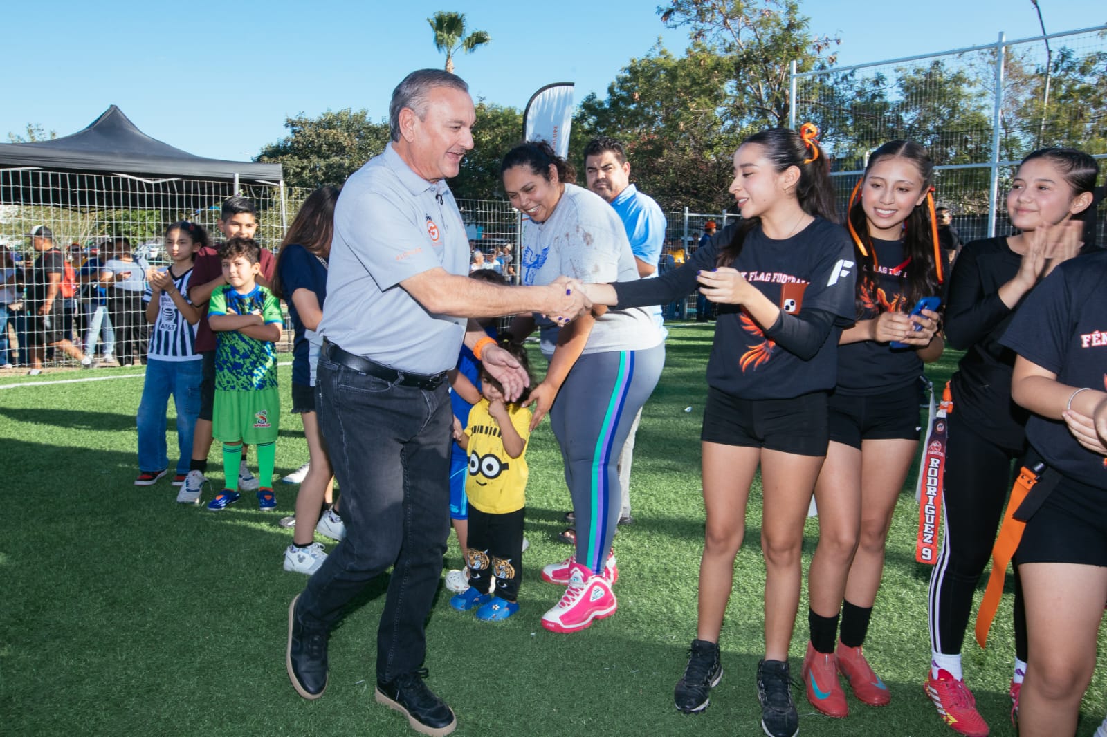 "Esto se construyó desde abajo, era una cancha ya totalmente inservible, la gente no se merecía eso, los niños y jóvenes que juegan aquí merecen una cancha así de primer nivel, le invertimos porque vale la pena, llevamos casi 60 canchas en Guadalupe y vamos a inaugurar el jueves una preciosa y profesional en el Cedereg, ya se darán cuenta", resaltó el alcalde de Guadalupe.