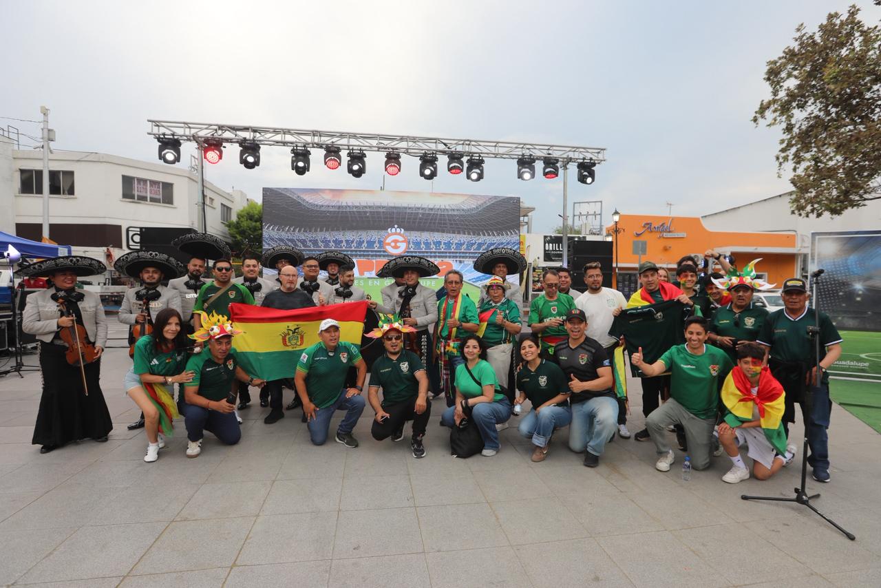 Cientos de personas disfrutaron de la previa del partido entre Bolivia e Irak, en la Plaza Principal de Guadalupe.