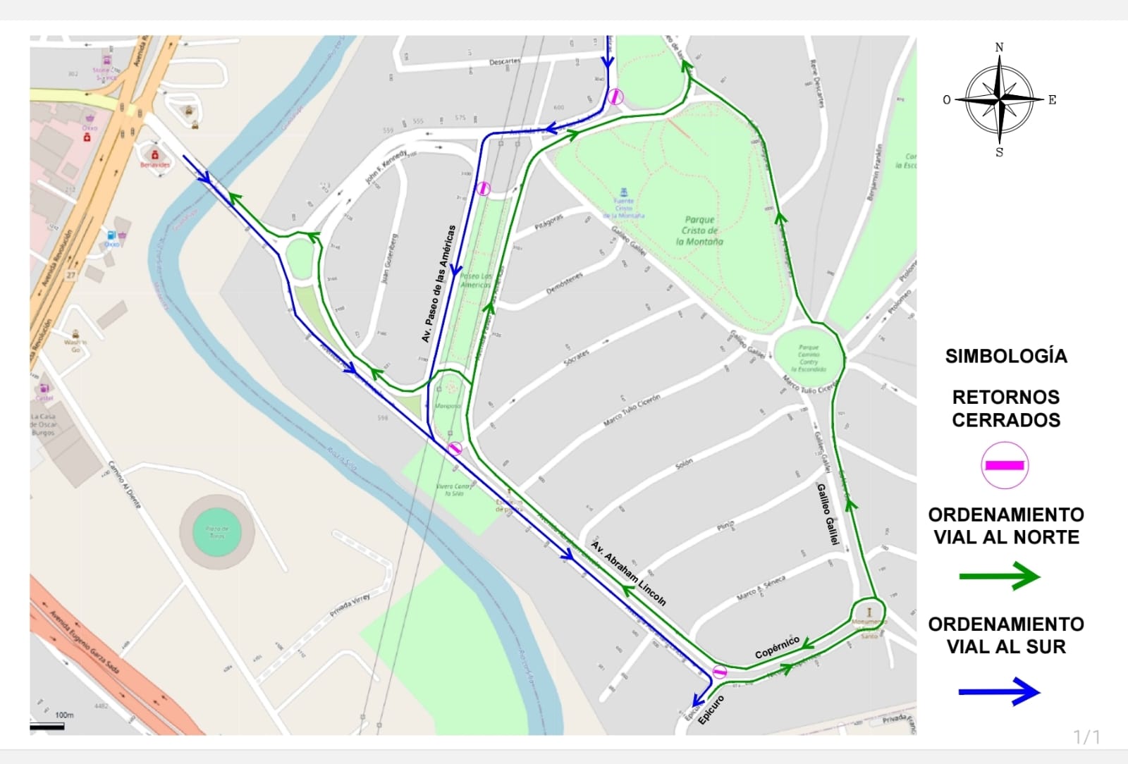 Los retornos que se cerrarán son en las calles Anáxagoras, John F. Kennedy, Sócrates y Epicuro con lo que se busca mejorar la movilidad de la zona.